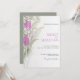 Invitación a la boda de tulipanes rosa lila y elegante pastel en un estilo de acuarela poco convencional con el moderno guión de Art Nouveau de los años 20. Las preciosas flores bohemias para un boda de primavera o verano. Sage versión sencilla en verde y blanco.