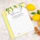 Sumérjase en el encanto de nuestra elegante tarjeta de juego de ducha de limón que soy yo novia, una deliciosa adición a cualquier celebración donde el amor y la risa ocupan el centro del escenario. Este diseño es un festín visual, con limones acuarelas que le dan un toque de elegancia vibrante a toda la composición. Cada elemento, limones a la elegante tipografía, captura la esencia de la alegría de la ducha de novia y la celebración. Las suaves pinceladas acuáticas le dan un toque caprichoso, creando un ambiente de frescura y alegría. Los tonos de limón y los detalles encantadores hacen de este juego un complemento perfecto para una ducha de novias sofisticada y llena de entusiasmo. Elementos coincidentes disponibles.