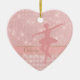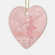 Este elegante adorno se caracteriza por una bailarina rosa en posición contra una joya de bonito como fondo rosa más claro con pequeñas estrellas de luz. Su nombre es de oro oscuro en una pancarta semitransparente enmarcada en oro. La parte posterior del adorno tiene un campo blanco en forma de corazón con más campos de texto para su personalizar. El campo de texto está enmarcado con un forro de diamante falso y colocado en el mismo fondo de luces rosadas. Hermosa para tu propia bailarina especial para El día de San Valentín, su cumpleaños o cualquier ocasión especial. ¡Sólo personalizar el texto!