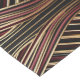 Un mantel de mesa elegantemente rayado está cubierto sobre una mesa de madera, añadiendo un toque de sofisticación a un entorno de boda. Los colores cálidos y los patrones intrincados crean una atmósfera encantadora e invitante.