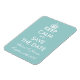 Elegante Mantener la calma salva el imán de fecha para el boda. Mantengan la calma y sigan con la parodia, diseño personalizado con nombre de novia y novio. Color de fondo verde azulado y blanco o personalizado. Hermosa temática de mariscos de diseño.