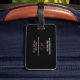 Elegante etiqueta de bolso para un agente de viajes, o cualquier otro profesional... con la imagen de un mapa marrón del mundo y un pequeño avión sobre un fondo negro.