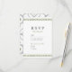 Esta sencilla y formal tarjeta RSVP de bodas presenta un marco rústico vintage decorativo con letras de estilo tradicional en tonos grises y verdes, y un magnífico patrón vintage con monograma en la parte trasera, elegante y clásico, ideal para bodas vintage, boda clásico y boda a la antigua. El color de fondo blanco se puede cambiar para que coincida con el tema de tu boda, sólo tienes que hacer clic en el botón "Personalizar" y luego editar el color en la sección "Color de fondo impreso". Vea todas las piezas coincidentes de esta colección de "Bodas clásicas" a continuación.