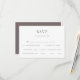 Haga que su boda casual planee una brisa con nuestra moderna tarjeta RSVP lilac. Con un texto limpio sobre un fondo blanco nítido, esta carta sencilla y elegante forma parte de nuestra elegante y elegante colección de bodas florales de durmiente rústico con melocotón. Permita que sus huéspedes indiquen fácilmente sus preferencias dietéticas y RSVP. Completa tu papelería boda con nuestros diseños de coordinación. ¡RSVP ahora para una celebración sin estrés!