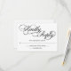 Un elegante y formal RSVP de boda blanca con escritura de caligrafía negra.