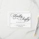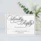 Un elegante y formal RSVP de boda blanca con escritura de caligrafía negra.