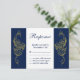 Esta elegante tarjeta de respuesta boda inspirada en la henna se acentúa con pavos reales dorados y delineados a mano sobre un fondo azul marino y blanco, haciendo de este diseño mehndi perfecto para el Boda indio moderno o tradicional. La Invitación a la Boda de Pavo Real - Marina y Blanco, está disponible para la coordinación. Sin embargo, si se necesitan artículos adicionales, contacte con nosotros en prettyfancyinvites@gmail.com con su solicitud.