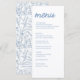 Elegante menú Blue French Floral Bridal Shower