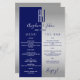 Añade un toque de sofisticación a tu celebración con este menú de barra boda color plata moda y azul marino. Diseñado con una elegancia moderna, cuenta con un diseño limpio y un monograma personalizado con las iniciales de la pareja en la parte superior. Perfecto para recepciones, horas de cóctel o eventos formales, este elegante menú de bar complementa una refinada temática boda mientras guía a los huéspedes a través de sus bebidas con estilo.