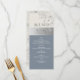 Añada un toque de elegancia a su boda de invierno con este impresionante menú boda de moda boho. Con un bonito fondo azul polvoriento, flores doradas y acentos plateados, combina a la perfección elementos modernos y vintage para un ambiente sofisticado y romántico. Ideal para una celebración de invierno, este menú le aporta un toque único y refinado a su día especial.