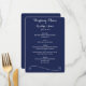 Elegante menú boda azul marino con texto blanco cambiable y gráficos decorativos