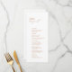Este elegante y moderno menú boda es la manera perfecta de añadir un toque de sofisticación a su recepción nupcial. Con una tipografía limpia y moderna sobre un fondo blanco clásico, el diseño de este menú es a la vez intemporal y elegante. Con los campos de texto de personalizable, puede agregar fácilmente sus propios elementos de menú y personalizar el menú para que se ajuste a su estilo y tema boda. Para cambiar detalles, haga clic en "Detalles". Para mover el texto o cambiar el tamaño, la fuente o el color, haga clic en "Editar usando la herramienta de diseño". Diseñado para coordinar con para la Colección Invitación a Boda "Chloe". Vea el enlace de la colección en esta página para ver todos los elementos coincidentes de este hermoso diseño.