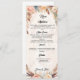 Aumente su experiencia boda con esta magnífica carta de boda, con un sofisticado tema de boho floral con rosas suaves, delicada vegetación y acentos rústicos de pluma. Perfecto para bodas bohemias, rústicas, vintage o elegantes, la carta ofrece una manera elegante de mostrar su cuidada cocina. Personalízalo con los detalles de su menú boda, incluyendo aperitivos, platos principales, postres y bebidas, para crear una impresión duradera en sus huéspedes.