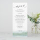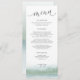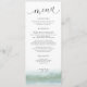 Elegante menú Boda de acuarela del lago y de los árboles: la carta está pintada con acuarelas y árboles abstractos rodeando un lago. Tiene tonos suaves de verde y azul. Perfecto para una boda a orillas del lago o de destino.