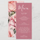 Elegante menú Boda de rosas malvas y blancas
