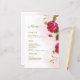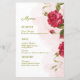 Haga que su menú boda sea inolvidable con este impresionante diseño de temática rosa. Con rosas rojas profundas sobre un suave fondo de color rosa, esta carta irradia romance y sofisticación. La combinación de modernos sans-serif y elegantes tipos de letra añade un toque de encanto intemporal. Un mensaje sincero invita a sus huéspedes con sencillez y gracia. Ideal para bodas románticos, celebraciones en el jardín o ceremonias íntimas. F012