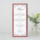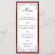 Un menú boda delgado con un borde rojo rubí y un elegante patrón de giro gris. Hay espacio suficiente para cuatro platos. Te parecerá fantástico sobre los platos de la cena en las mesas de recepción. Si necesita ayuda para personalizar este menú de cena, póngase en contacto con el diseñador que puede ayudarle.