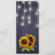 Carta de texto editable de la recepción de bodas con hermosas ramas de girasoles rústicas y cuerdas de luces de centelleo sobre fondo de pizarra azul marino oscuro a medianoche. Ideal para su noche de verano o otoño | elegante campo rústico | bodas exteriores con temática de patio trasero.