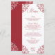 Esta elegante tarjeta de menú nupcial se coordina perfectamente con nuestra suite de invitación Nadine. El color de diseño está establecido en rojo, pero puede cambiar el color del diseño cambiando el color de fondo. **CÓMO CAMBIAR EL COLOR DE DISEÑO** 1) Haga clic en el botón "Personalizar". 2) Haga clic en el enlace "PERSONALIZAR" en la parte inferior. Entonces tendrá la opción de cambiar su "COLOR DE FONDO" a su color boda. No olvides cambiar el color del texto para que coincida con tu diseño.
