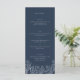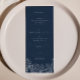 Elegante menú Boda floral azul marino azul marino de 4 x 9" con tarjetas de menú de menú de cenas planas con caligrafía de escritura moderna. En nuestra tienda VelvetPaperCo encontrará una colección de artículos y tamaños que coinciden las 24 horas.