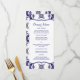 Elegante menú de cena delgado con patrón de medallón azul y plata