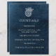 Elegante y elegante diseño boda. Papel acuarela azul marino. Hermosa concha de mar con flores. Letras blancas. Combinación elegante de tipos de letra. Monograma boda: corona laurel clásica con las iniciales de la novia y del novio. Perfecto para bodas en la playa, bodas junto al mar, bodas costeros o bodas en el océano. La decoración es sobria y elegante, con colores azules y blancos, lo que lo convierte en una gran elección para un boda elegante y semiformal.