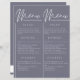 Presentamos nuestra tarjeta de menú personalizable de doble trineo, diseñada para que usted corte en el medio creando dos menús separados, convirtiendo esta solución económica para un boda con presupuesto. NOTA; el menú no viene precortado. Esta tarjeta de excelente factura presenta un aspecto limpio y sofisticado con un delicado motivo de flor de acuarela en la parte posterior con un sencillo monograma. Espacio para tres títulos diferentes y texto debajo para más detalles del menú para su día especial. Perfecto para un bufé o una comida en la estación. El delicado ilustracion floral botánico acuático en gris oscuro y violeta polvorienta le da un diseño romántico moderno. La flor se puede borrar fácilmente si se desea un diseño aún más sencillo. Haga clic en la herramienta de diseño abierto para realizar cambios personalizados.