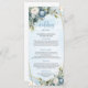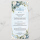 Elegante menú Dusty Blue White Gold Floral Boda