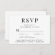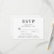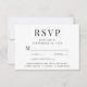 Clásica tarjeta de gabinete RSVP para bodas simples con "RSVP" en elegante tipografía serif y sus opciones de menú personalizadas.