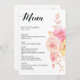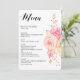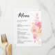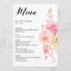 Elegante menú boda floral con hermosas flores acuáticas, perlas, encaje y texto de personalizable impreso en fondo blanco