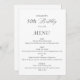 Celebre un hito con un estilo atemporal utilizando este elegante menú Minimalista de cumpleaños número 50. Diseñado con líneas depuradas, fuentes refinadas y un diseño sofisticado, ofrece un lujo subestimado a la mesa. Perfecto para una cena formal o una reunión de lujo, este menú muestra sus cursos cuidadosamente seleccionados con claridad y clase. Su paleta neutra y su diseño moderno lo hacen versátil para cualquier combinación de colores o decoración fiesta, añadiendo un toque pulido a cada lugar. Ideal para imprimir o compartir digital, da la tónica de una noche inolvidable de deliciosa comida y preciados recuerdos.
