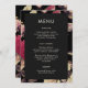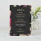 Hermoso menú boda clásico con motivos florales florales y carnosos, con un bonito look botánico de flores rojas y rosas sobre un elegante fondo negro