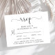 Elegante tarjeta RSVP de boda con "rsvp" en un guión de caligrafía de moda con chispas, tipografía sencilla y moderna, opciones personalizadas de entrada de menú y sus nombres unidos por un corazón en la parte posterior.