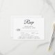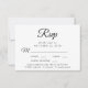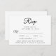 Elegante tarjeta RSVP de boda con "Rsvp" en un guión de caligrafía de moda, tipografía serif clásica, opciones personalizadas de entrada de menú y sus nombres unidos por un corazón en la parte posterior.