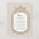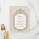 MARFIL, CREMA DE ECRU Y ORO, MENÚ DE CENA FORMAL PARA LA RECEPCIÓN DE BODAS O DUCHA BRIDAL. Aspecto clásico y ostensiblemente ornamentado, dorado y dimensional, marco barroco victoriano rococó sobre un elegante patrón vintage de damasco en tono de tono en marfil y crudo que fue diseñado gráficamente por la artista con licencia internacional, Audrey Jeanne Roberts ©