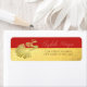 Elegante pavo real dorado glamoroso sobre fondo rojo dorado. Un diseño elegante y sofisticado.Costumbre con su nombre y detalles de dirección.