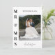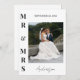 Celebre su día especial con estilo con esta clásica y elegante tarjeta de agradecimiento de foto de boda personalizada. Con un diseño audaz de "Sr. y Sra." combinado con su nuevo nombre de casados en una escritura de caligrafía fluida, esta tarjeta minimalista moderna es la forma perfecta de compartir su gratitud con familiares y amigos. La parte trasera viene con un mensaje de agradecimiento preimpreso que puede personalizar completamente para reflejar su sincero aprecio por el amor, el apoyo y los regalos atentos de sus invitados. Agregue su foto de boda favorita para un toque personal que será atesorado por todos los que la reciban. Un recuerdo atemporal que combina la sofisticación con el sentimiento.
