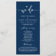 Bienvenidos a nuestra tipografía boda, Elegante guión azul de la Marina Romántica Moderna, tarjeta del Programa de Ceremonia Boda. Está diseñado con acento de desplazamiento que puede ser personalizado con texto personalizado/ personalizado para su fiesta nupcial, detalles de la ceremonia, notas conmemorativas y mensaje de agradecimiento. Si está buscando otros tipos y tamaños de tarjetas de programa, busque en nuestra sección de colección de tarjetas de programa correspondiente.
