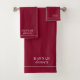 Elegante monograma blanco monograma nombre y guión apellido, toalla de baño marca el borde blanco sobre burdeos. Refresca la decoración del baño con un estilo tipográfico minimalista.
