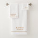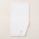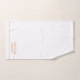 Elegante monograma dorado personalizado, nombre y guión de apellido, toalla de baño marca el borde blanco sobre blanco. Refresca la decoración del baño con un estilo tipográfico minimalista.