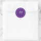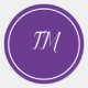 Elegante Monograma Blanco Púrpura Pegatina Redonda