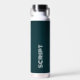 Elegante Monograma Botella de agua de escritura verde oscura , Elegante Monograma Barrio de agua de escritura verde oscura