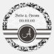 Elegante Monograma Damask Salvar Los Pegatinas De Boda De Fecha. Haga una impresión duradera con este elegante Monograma Damask Save The Date Boda Pegatina . Hay una franja a lo largo del pegatina y un círculo con un elegante monograma. El bonito fondo de damasco blanco y negro añade estilo y delicadeza. Diseñado por Olympia. Clásica y sofisticada pero contemporánea al mismo tiempo. Diseño disponible en varios colores. Personalízalo con tu texto. Puedes cambiar el texto y usarlo como pegatinas de Gracias o cualquier otro uso que pienses.