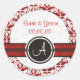 Elegante Monograma Damask Salvar Los Pegatinas De Boda De Fecha. Haga una impresión duradera con este elegante Monograma Damask Save The Date Wedding Stickers . Hay una franja a lo largo del pegatina y un círculo con un elegante monograma. El bonito fondo de damasco rojo y blanco añade estilo y delicadeza. Diseñado por Olympia. Clásica y sofisticada pero contemporánea al mismo tiempo. Diseño disponible en varios colores. Personalízalo con tu texto. Puedes cambiar el texto y usarlo como pegatinas de Gracias o cualquier otro uso que pienses.