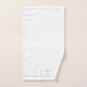 Elegante monograma personalizado serif de oro negro nombre y guión apellido, toalla de baño set borde dorado sobre blanco. Refresca la decoración del baño con un estilo tipográfico minimalista.