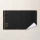 Elegante monograma personalizado suero de oro negro nombre toalla de baño set bordes dorados sobre negro. Refresca la decoración del baño con un estilo tipográfico minimalista.