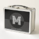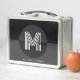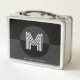 Elegante caja de almuerzo Metalizado monograma moderno geométrico blanco y negro