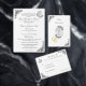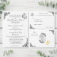 El frente de diseño presenta una hermosa imagen de color plateado de dos delicados rosas de primer plano. Las iniciales de los primeros nombres de la pareja se muestran junto a cada imagen rosa en un elegante tipo de letra plateado con un fondo beige pálido. El reverso muestra una gran inicial del apellido de la pareja en el centro como diseño principal. El apellido de la pareja aparece en frente en un elegante tipo de letra Nuptial. El diseño está rodeado por la imagen de pequeños rosas. Diseñado para coordinar con la "Virgin Mary Catholic Silver Boda Suite". También disponible en dorado/sepia.