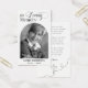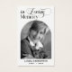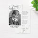Esta hermosa tarjeta de oración es una manera perfecta de honrar la memoria de tu ser querido. Con una foto clásica en blanco y negro, una caligrafía elegante y un poema conmovedor, esta carta es un recuerdo atento y atemporal para la familia y los amigos. Personaliza fácilmente la tarjeta con tus propios detalles y fotos.