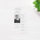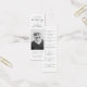 Crea un conservador significativo con nuestras tarjetas de marcadores de fotos de la simpatía del funeral de la oración conmemorativa. Estas tarjetas están diseñadas para honrar la memoria de tu ser querido y ofrecer comodidad durante este momento difícil. Cada marcador cuenta con una foto personalizada, lo que le permite mostrar un momento especial que capta su espíritu. El diseño es moderno y elegante, con un espacio para una oración o un mensaje sentidos en la parte trasera. Estas tarjetas de marcadores sirven como un homenaje reflexivo y práctico, proporcionando consuelo y apoyo a quienes las reciben. Ya sea que se utilice como un favor conmemorativo o que se distribuya en el funeral, estas tarjetas serán un recordatorio preciado de la vida de tu ser querido y el impacto que tuvieron en otros.